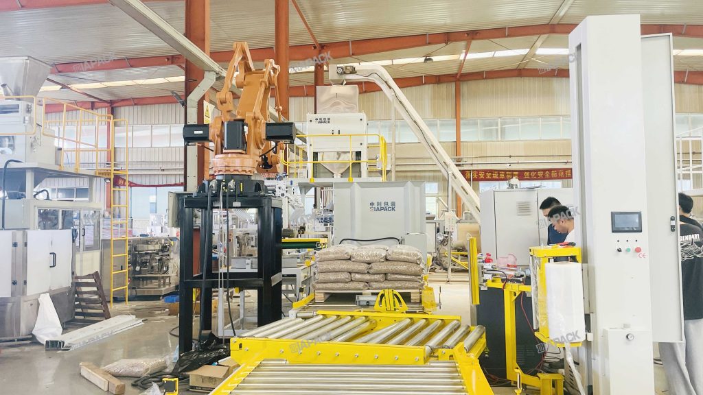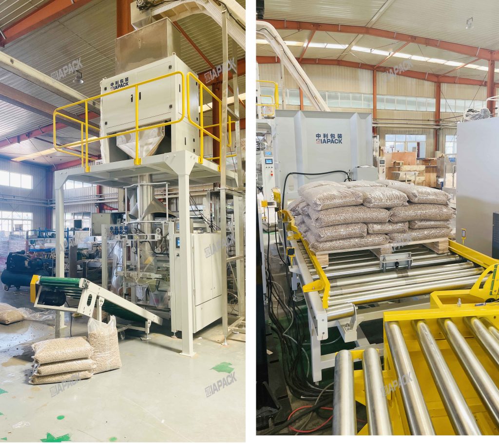 Siz bu yerdasiz: Bosh sahifa » Yangiliklar » 15KG og'irlikdagi yog'och granulalar, to'ldirish paketlari Paletizatsiya liniyasi yetkazib berishga tayyor