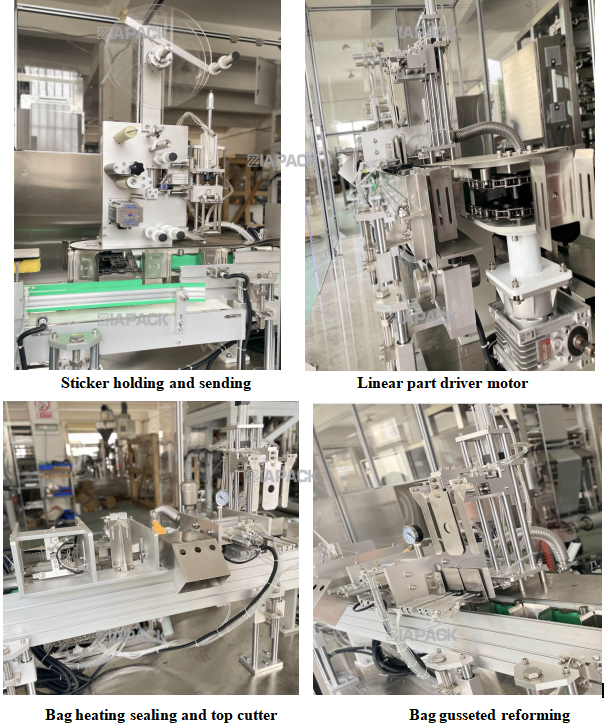 Ushbu mashina yuqori yorliqli gusset sumkasini tayyorlash uchun maxsus dizayndir. Mahsulot to'liq yuklangandan so'ng, ushbu mashinaga tushiriladi. Ushbu mashina sumkani olib yuradi, bir marta og'zini buklaydi va yorliqni yopishtiradi. Mashina ramkasi tomonidan ishlab chiqariladi. SUS304 .PLC va sensorli ekran Siemens brendi tomonidan qabul qilinadi .Va Pnevmatik qismlar SMC brendini qabul qiladi .Asosiy elektr komponentlari Omron va Schneider brendlarini qabul qiladi .Bu mashina tayyor sumkaning yuqori etiketkasiga erishish uchun avtomatik qadoqlash mashinasi bilan ishlaydi .Ushbu mashina avtomatik ravishda funktsiyaga erishishi mumkin . yorlig'i ajratilgan , Yorliq yuborish .Yorliq detektori va yorliqni bosish .