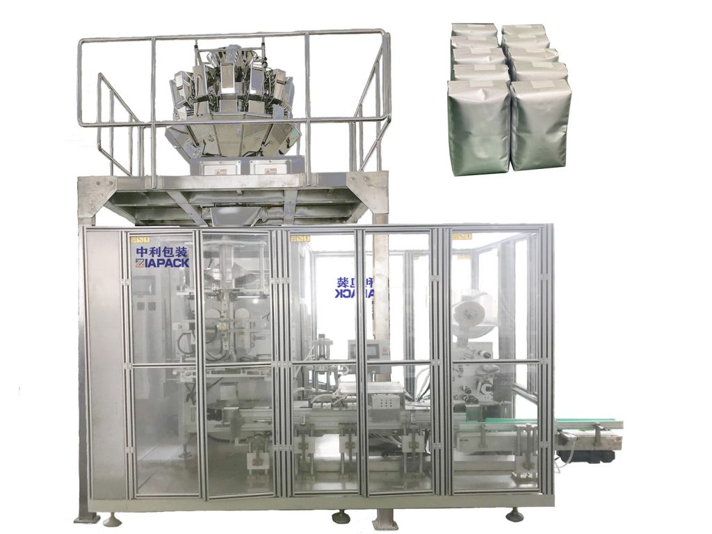 Butun chiziq, shu jumladan, bitta to'plamli vffs sumkasini shakllantiruvchi plomba muhrlash mashinasi, bitta to'plamli stikerli sumka qadoqlash mashinasi, bitta to'plam og'irlikni tekshirgich va buferli konveyer mashinasi va bitta to'plamni shrink plyonka o'rash mashinasi. Butun mashina avtomatik ravishda donni tortish, sumka hosil qiluvchi muhrlash stikerini bajarishi mumkin. va burilish .Ushbu qurilma mashinasida qo'shimcha ixtiyoriy qop vakuum funksiyasi mavjud .