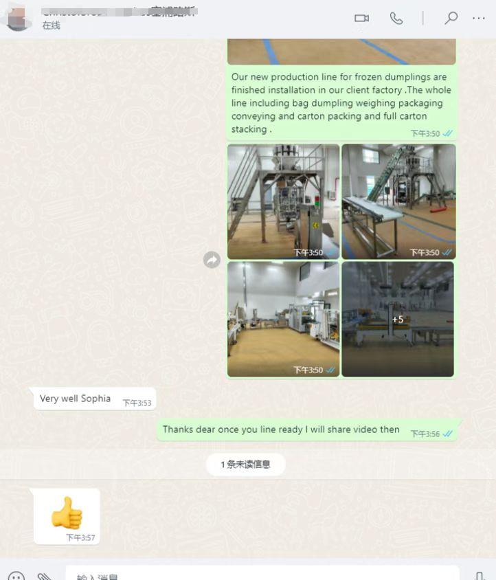 Yana bir avtomatik muzlatilgan oziq-ovqat qoplarini qadoqlash va kartonni to'ldirish liniyasi mijozning fabrikasida muvaffaqiyatli o'rnatildi!