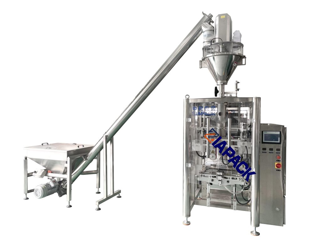 Auger plomba mashinasi Sut Po'choqlari kichik vertikal shaklli plomba yopishtiruvchi mashina asosan oziq-ovqat pudrasi, chaqaloq ozuqa, susam pishiriq, tuz, shakar, un, kraxmal, lazzat, sut kukuni, oqsilni kukunlari va boshqalar kabi chang va un mahsulotlarini o'rash uchun ishlatiladi.