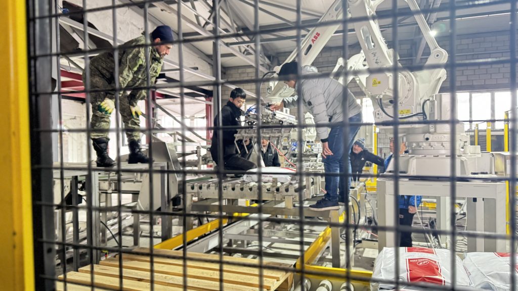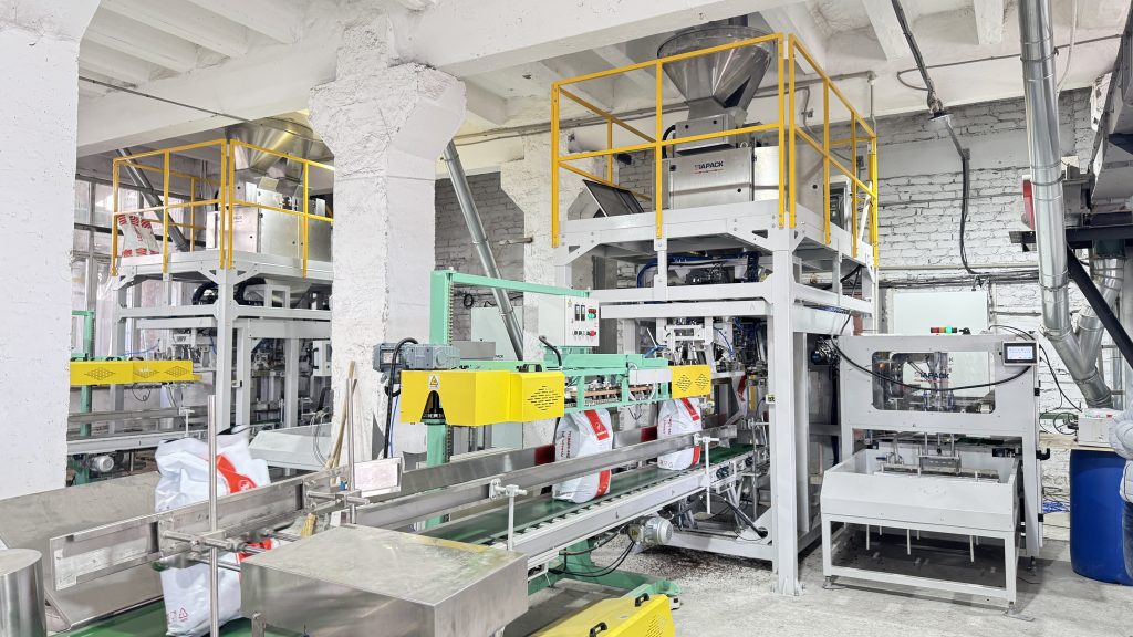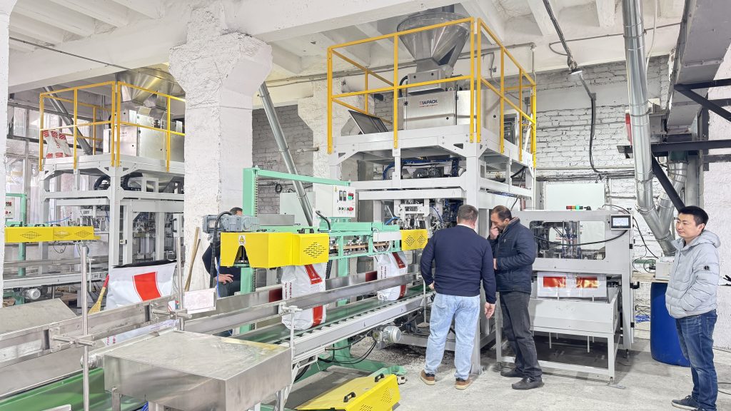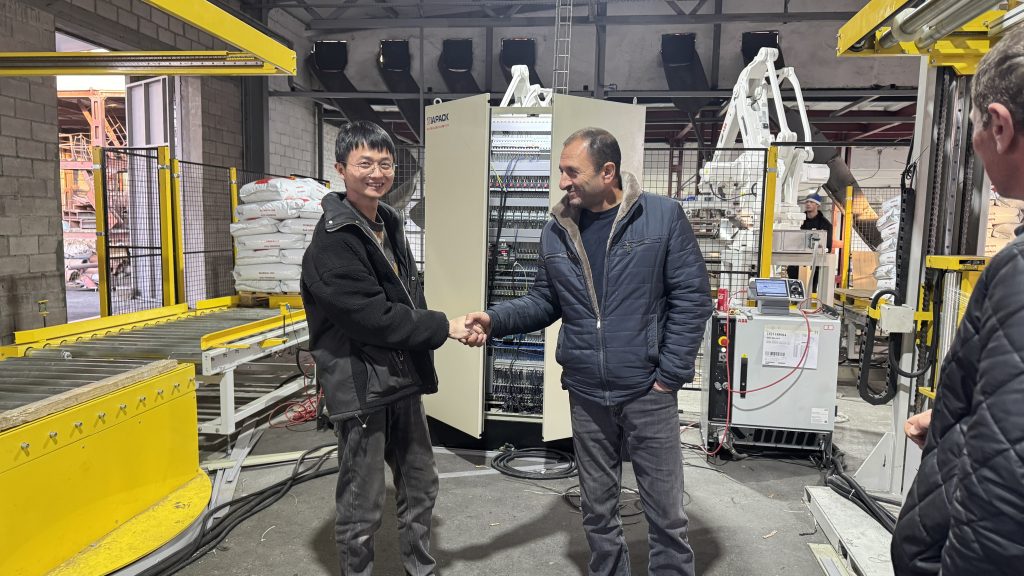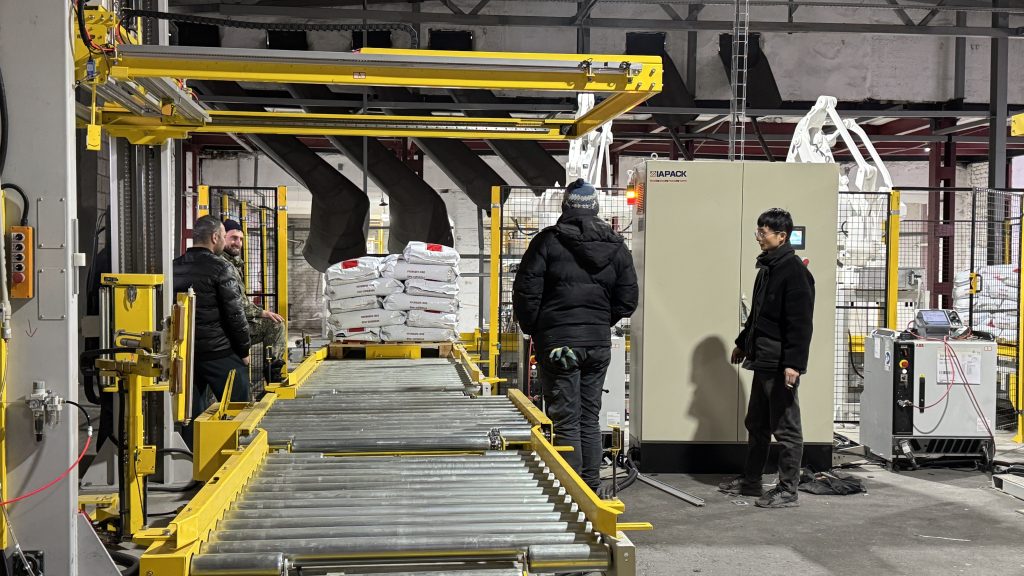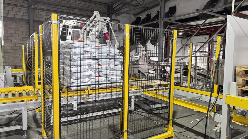 Siz bu yerdasiz: Bosh sahifa » Yangiliklar » Mijoz fabrikamizda 25 kg og'irlikdagi uy hayvonlari uchun oziq-ovqat mahsulotlarini avtomatik tortish uchun qoplarni tashish va palletlash liniyasi ishlay boshlaydi.