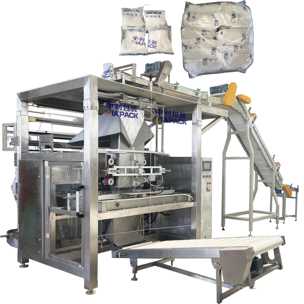 Ushbu mashina kichik sumkani katta sumkaga qadoqlash uchun mos keladi .Mashina avtomatik ravishda sumkani yasashi va kichik sumkaga to'ldirishi va keyin katta sumkani muhrlashi mumkin . Ushbu mashina quyidagi birliklarni o'z ichiga oladi: